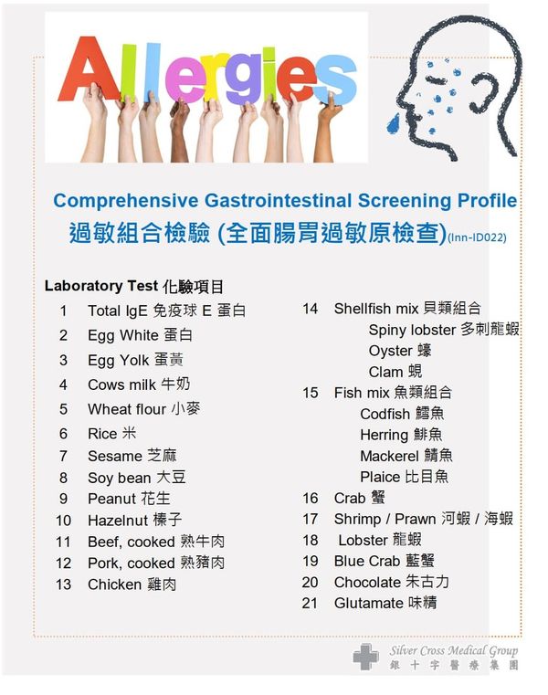 1 次 - 過敏組合檢驗 (全面腸胃檢查) (#Inn-ID022)
