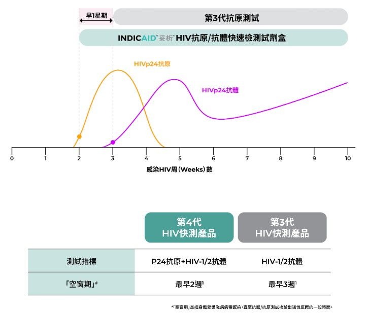 HIV(人類免疫力缺乏病毒)有機會引發愛滋病,但早期驗出就能盡快治療。 INDICAID妥析HIV抗原/抗體檢測試劑盒採用第四代HIV檢測技術,同時檢測HIV抗原和抗體,能更早發現HIV感染,從而更早獲得適當的支援及治療